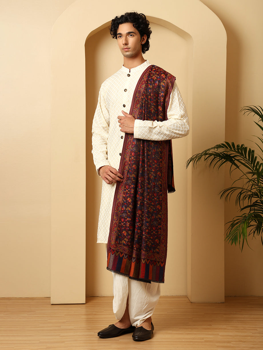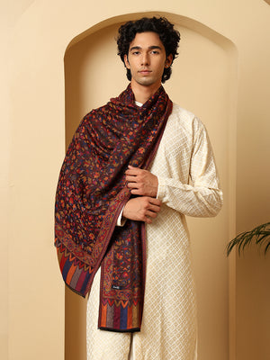 Tweedle Silky Soft Reversible Kani Stole for Men - Black - Tweedle