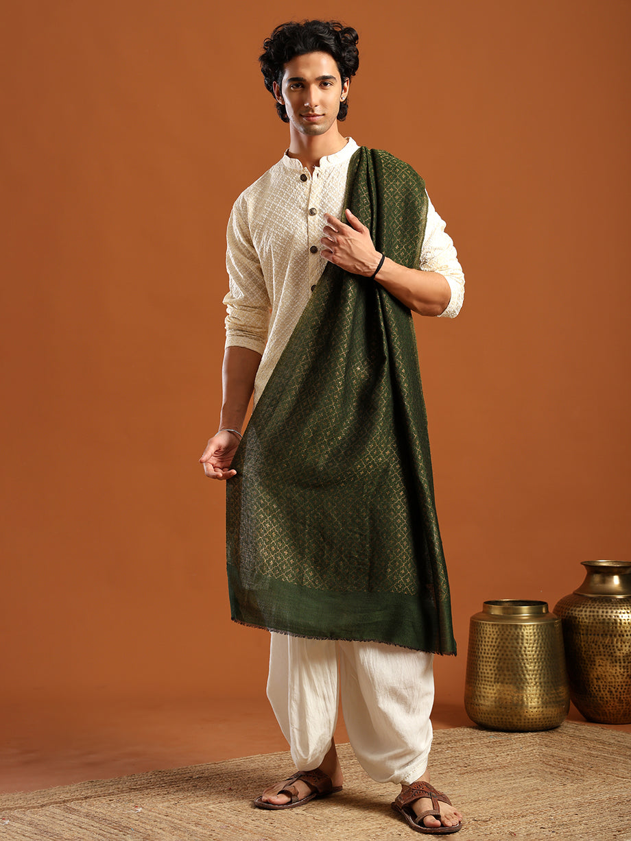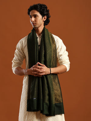 Tweedle Men’s Reversible Pashmina Wool Stole with Floral Zari Weave - Green Tweedle Men’s Reversible Pashmina Wool Stole with Floral Zari Weave - Green