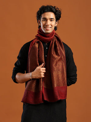 Tweedle Men’s Reversible Pashmina Wool Stole with Floral Zari Weave - Maroon Tweedle Men’s Reversible Pashmina Wool Stole with Floral Zari Weave - Maroon