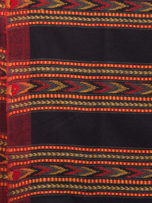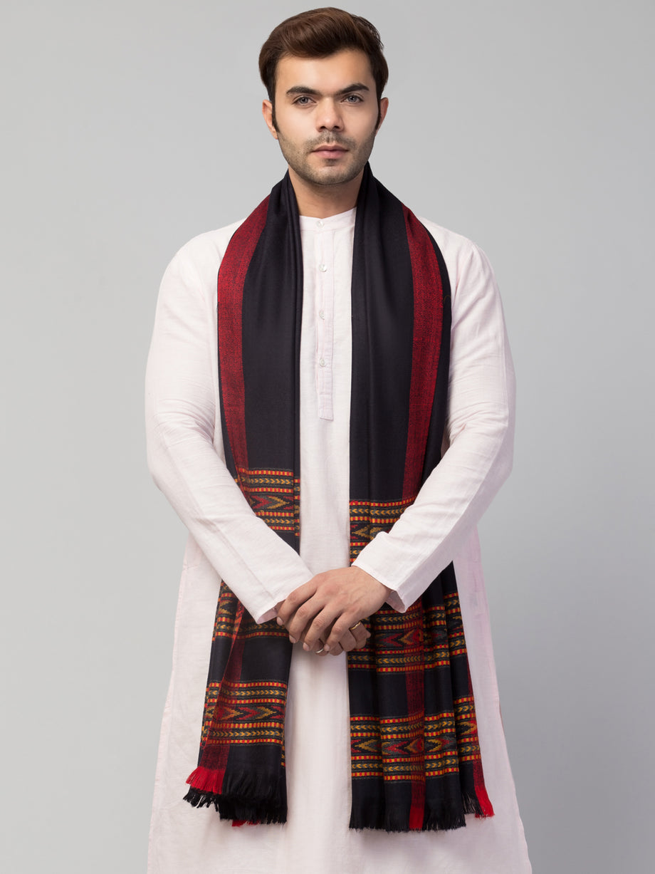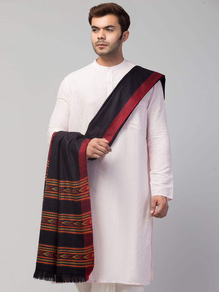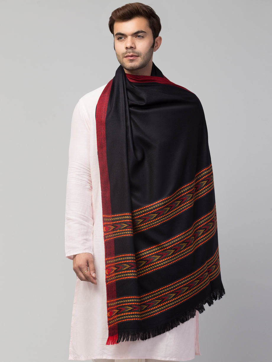 Ethnic Kullu Shawl for Men, Traditional Himachali Design with Tribal Motifs - Black (Size -40x80)