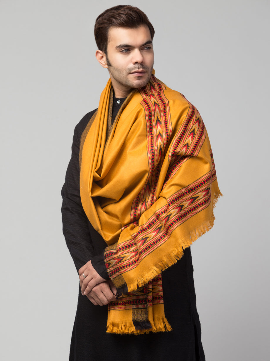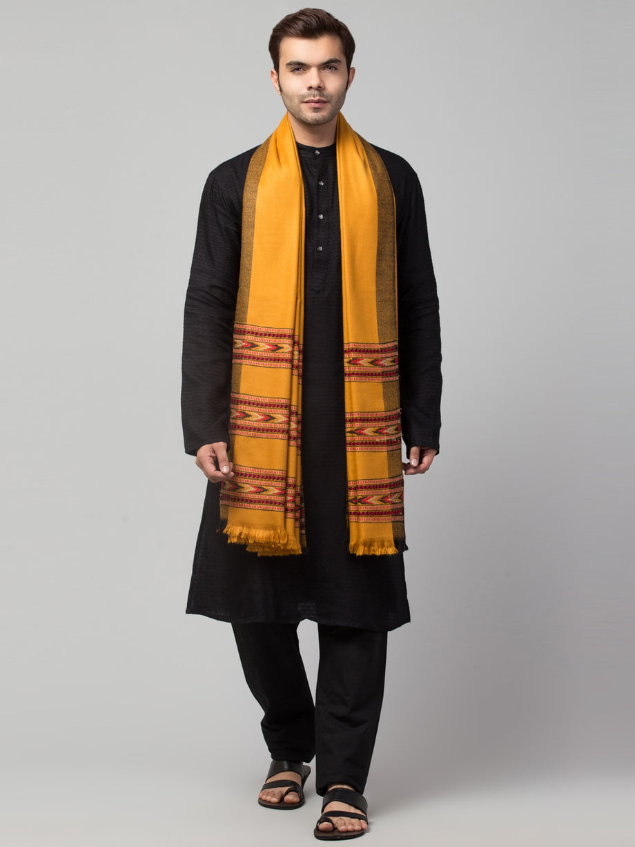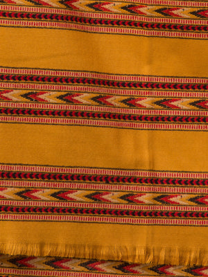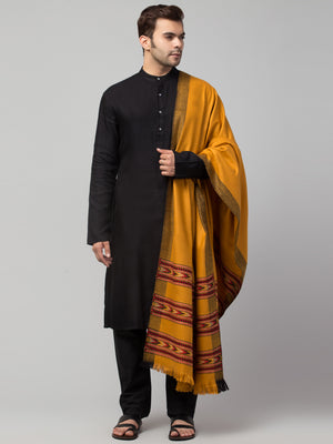 Ethnic Kullu Shawl for Men, Traditional Himachali Design with Tribal Motifs - Yellow (Size -40x80)