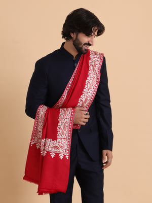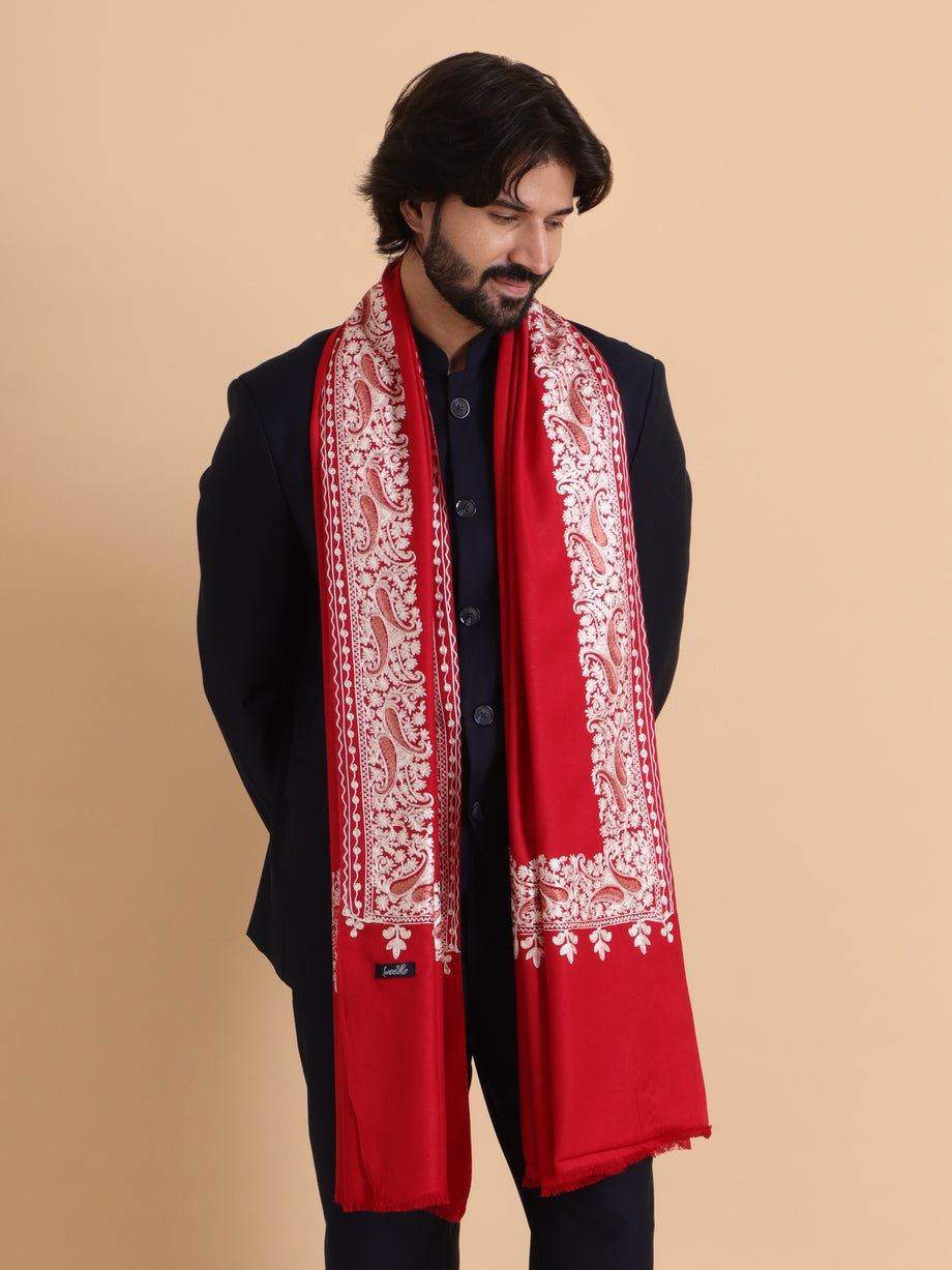 tweedle Kashmiri Aari Embroidery Shawl for Men - Maroon (40 x 80 inche - Tweedle