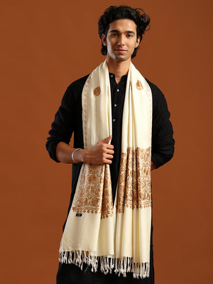 Tweedle Men’s Kashmiri Aari Embroidery Shawl / Stole - Off-White, Size - Tweedle