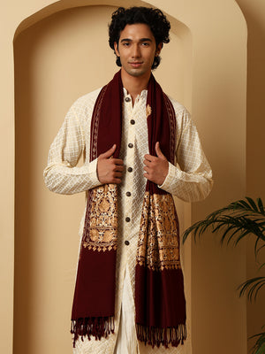Tweedle Men’s Kashmiri Aari Embroidery Shawl / Stole - Wine, Size - 40 - Tweedle