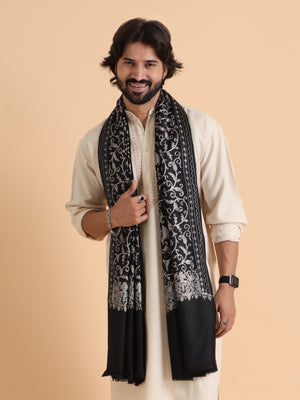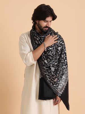 tweedle Kashmiri Aari Embroidery Shawl for Men - Black (40 x 80 inches - Tweedle