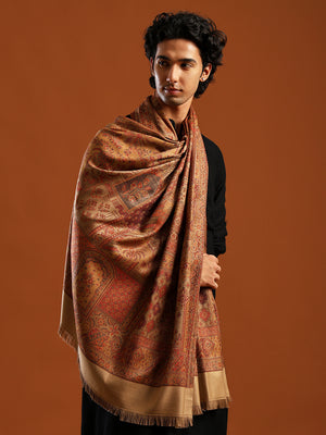 Tweedle Men’s Jamawar Shawl, Faux Pashmina - Beige, Size 40 x 80 inche - Tweedle