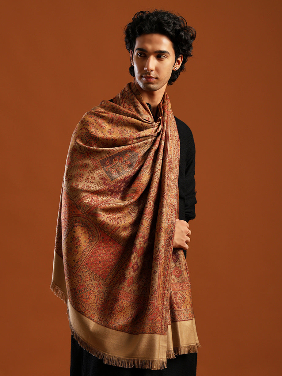 Tweedle Men’s Jamawar Shawl, Faux Pashmina - Beige, Size 40 x 80 inches Tweedle Men’s Jamawar Shawl, Faux Pashmina - Beige, Size 40 x 80 inches