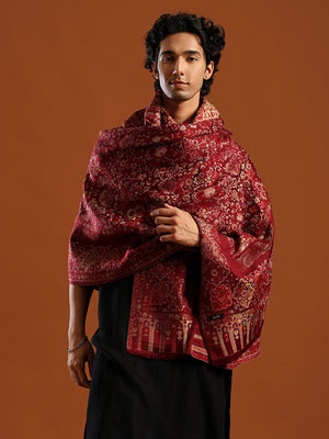 Tweedle Men’s Naira Kani Design and Zari Border - Maroon, Size - 40 x 80 inches Tweedle Men’s Naira Kani Design and Zari Border - Maroon, Size - 40 x 80 inches