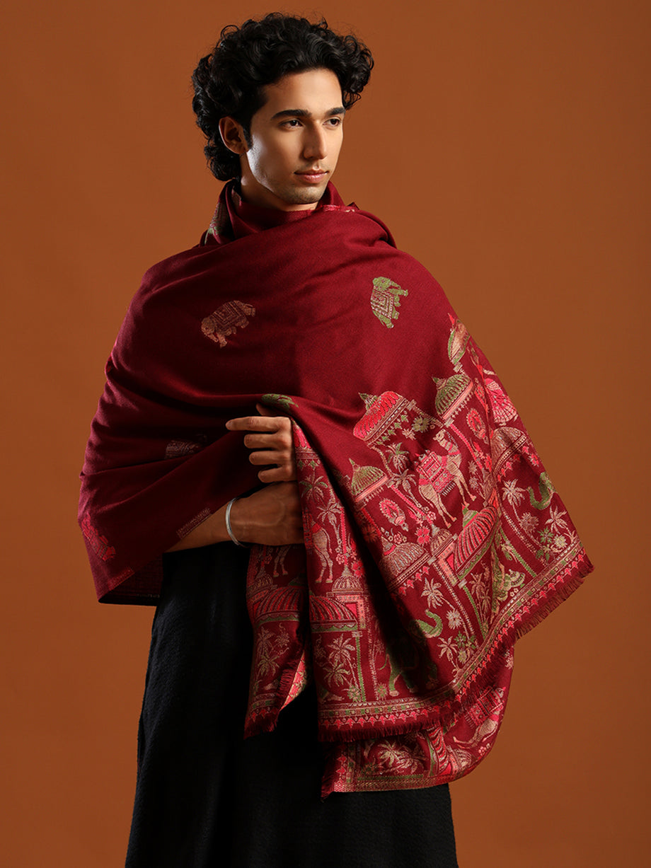 Tweedle Men’s Mahotsav Ethnic Design Zari Shawl, Faux Wool - Maroon, Size - 40 x 80 inches Tweedle Men’s Mahotsav Ethnic Design Zari Shawl, Faux Wool - Maroon, Size - 40 x 80 inches