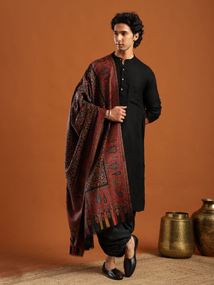 Tweedle Men’s Blended Wool Kashmiri Kani Shawl - Black Tweedle Men’s Blended Wool Kashmiri Kani Shawl - Black