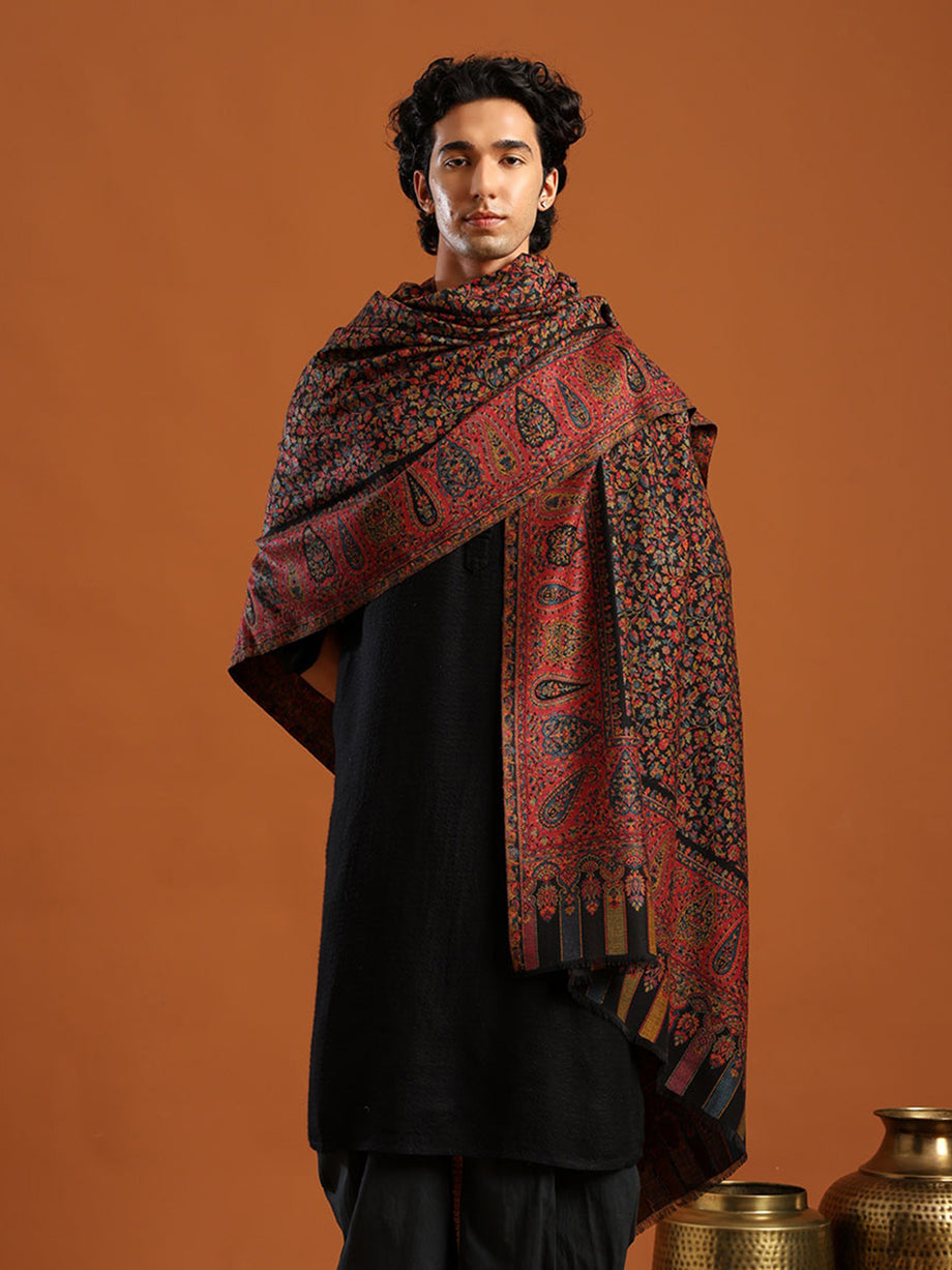 Tweedle Men’s Blended Wool Kashmiri Kani Shawl - Black - Tweedle