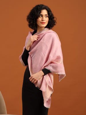 Tweedle Women’s Fine Wool Reversible Stole with Zari Border- Pink Tweedle Women’s Fine Wool Reversible Stole with Zari Border- Pink