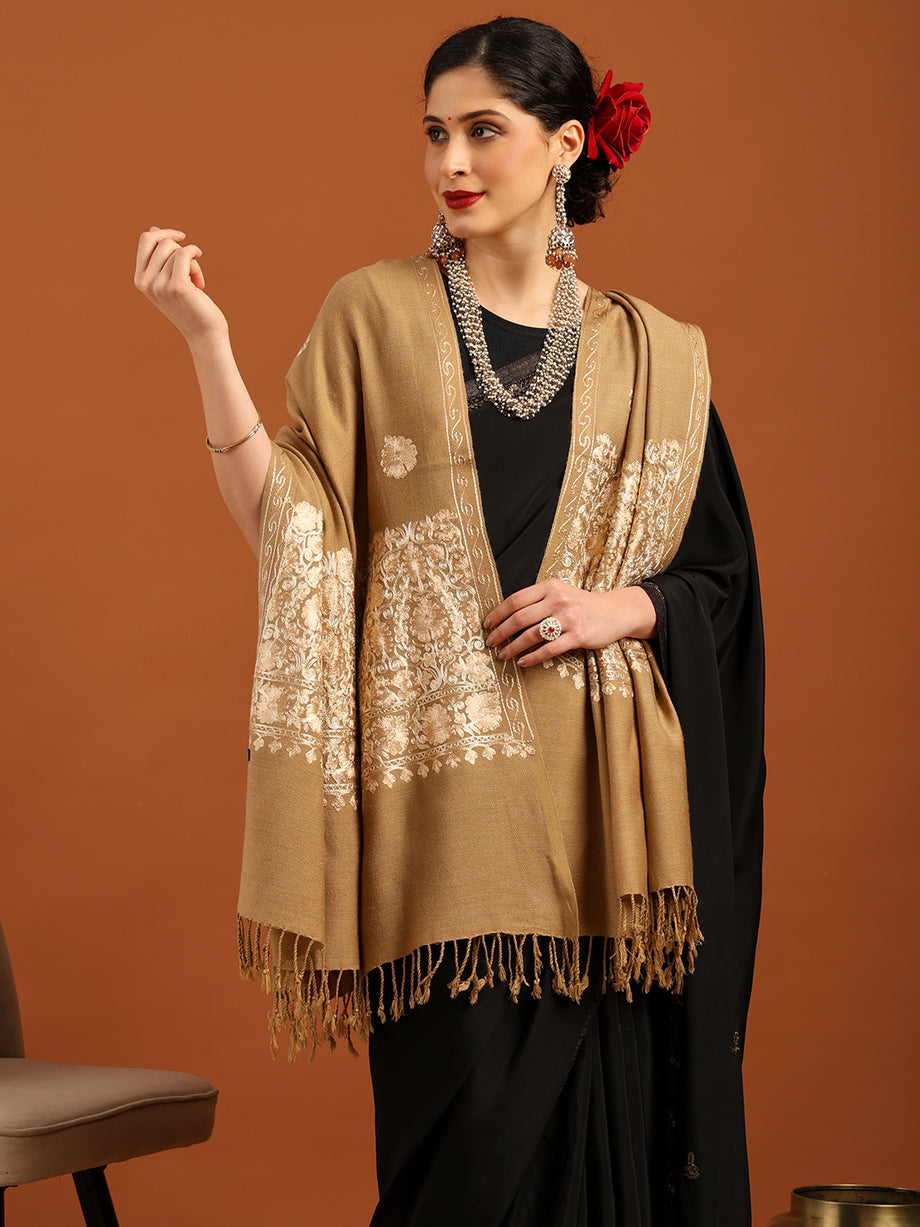 Tweedle Women’s Kashmiri Aari Embroidery Shawl / Stole - Beige, Size - - Tweedle