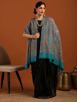 Tweedle Women’s Jamawar Shawl, Faux Pashmina - Turquoise, Size 40 x 80 - Tweedle