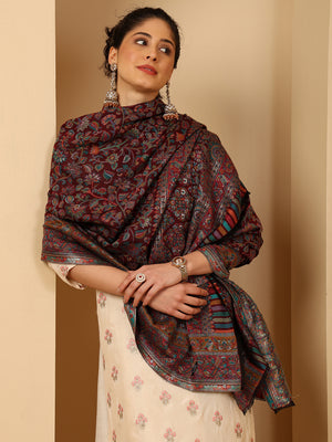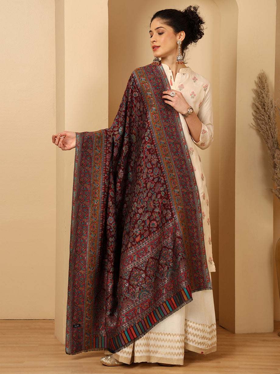 Tweedle Women’s Regalia Silk Moda, Zari Weave, Kashmiri Kani Shawl – Maroon Tweedle Women’s Regalia Silk Moda, Zari Weave, Kashmiri Kani Shawl – Maroon