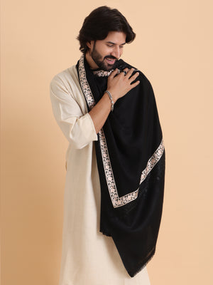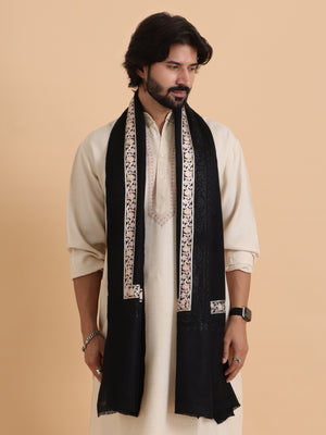 Tweedle Fine Wool Embroidered Stole/Scarf for Men -Black, Medium Size - Tweedle