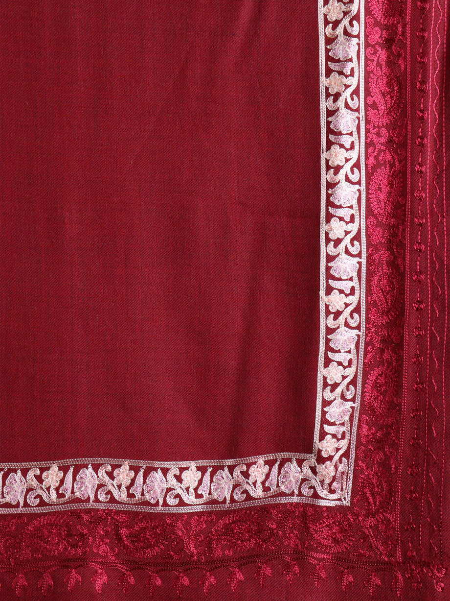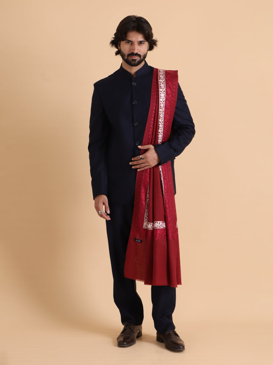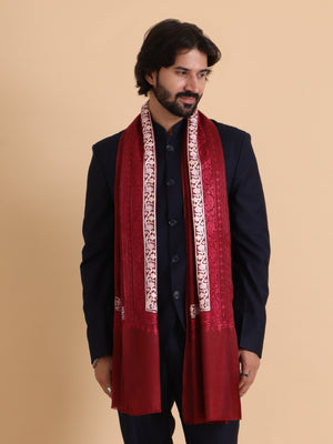 Tweedle Fine Wool Embroidered Stole/Scarf for Men -Maroon, Medium Size - Tweedle