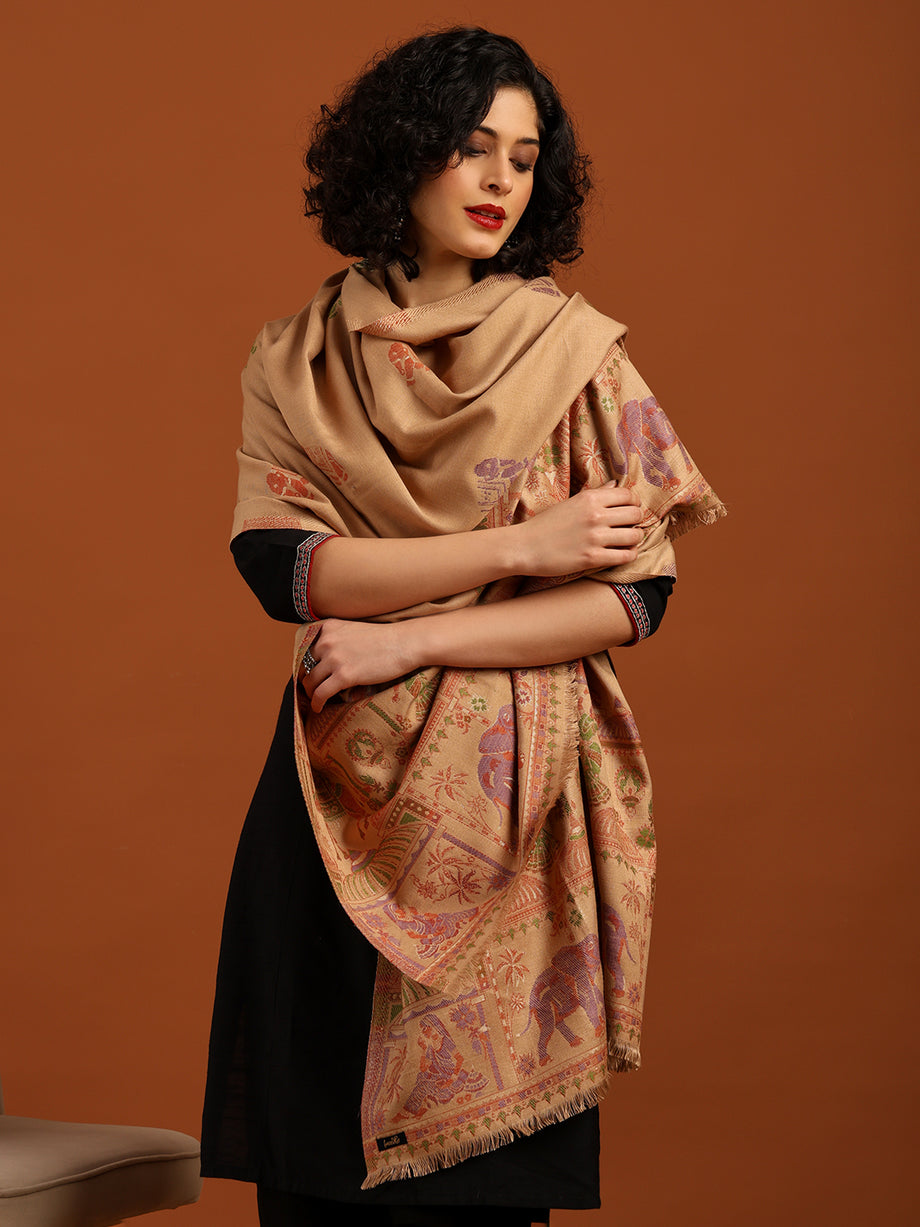 Tweedle Women’s Mahotsav Ethnic Design Zari Shawl, Faux Wool - Beige, Size - 40 x 80 inches Tweedle Women’s Mahotsav Ethnic Design Zari Shawl, Faux Wool - Beige, Size - 40 x 80 inches