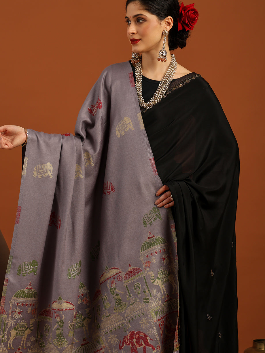 Tweedle Women’s Mahotsav Ethnic Design Zari Shawl, Faux Wool - Grey, Size - 40 x 80 inches Tweedle Women’s Mahotsav Ethnic Design Zari Shawl, Faux Wool - Grey, Size - 40 x 80 inches