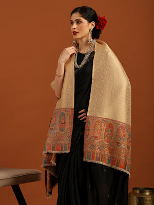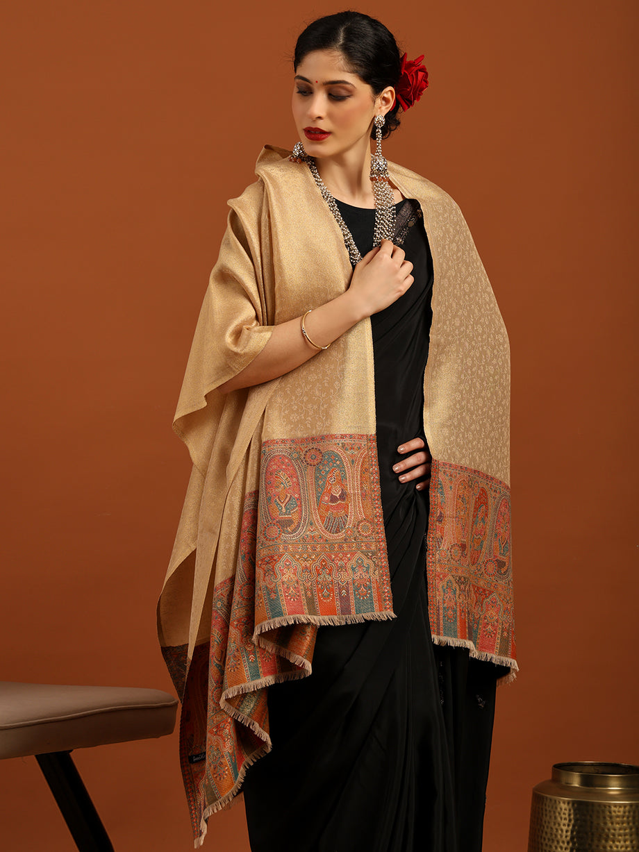 Woven Design, Ethnic Motifs Zari Shimmer Shawl for Women – Off-White - Tweedle