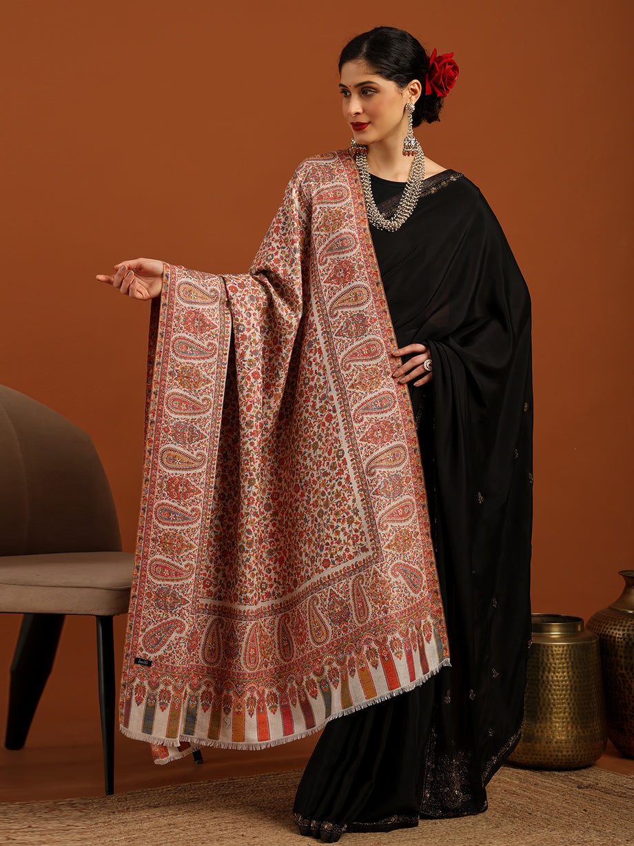 • Designed with a balance of style and comfort, this gorgeous Kashmiri shawl comes alive with delicate paisley and floral designs, carrying the charm of centuries-old Kashmiri heritage in every detail.