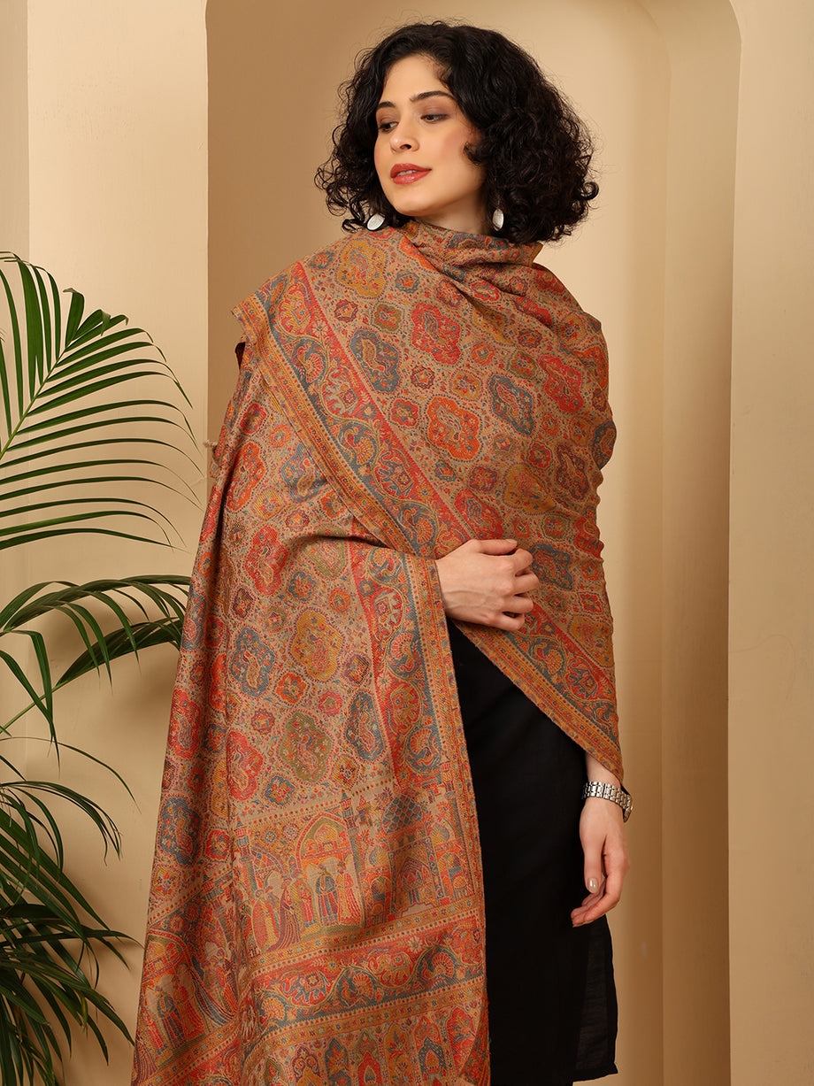 • Stylish Kani Kalamkari shawl for women, elegant wrap offering warmth, comfort, and artistic charm. Drape loosely over sarees or pair with modern outfits for effortless elegance.