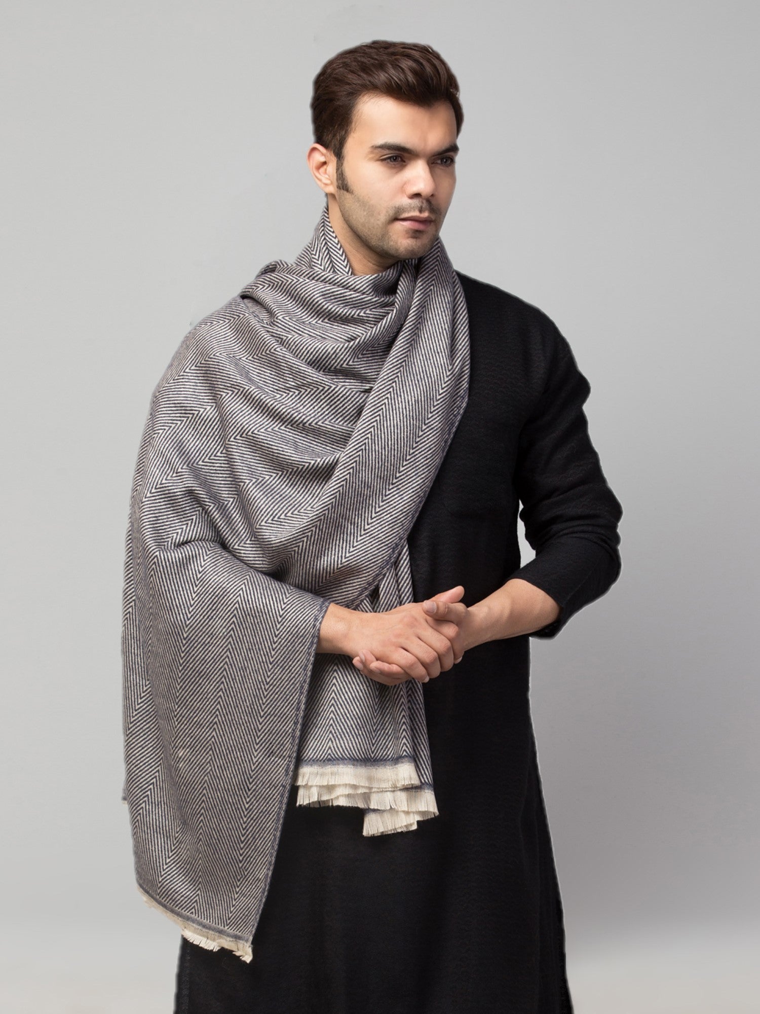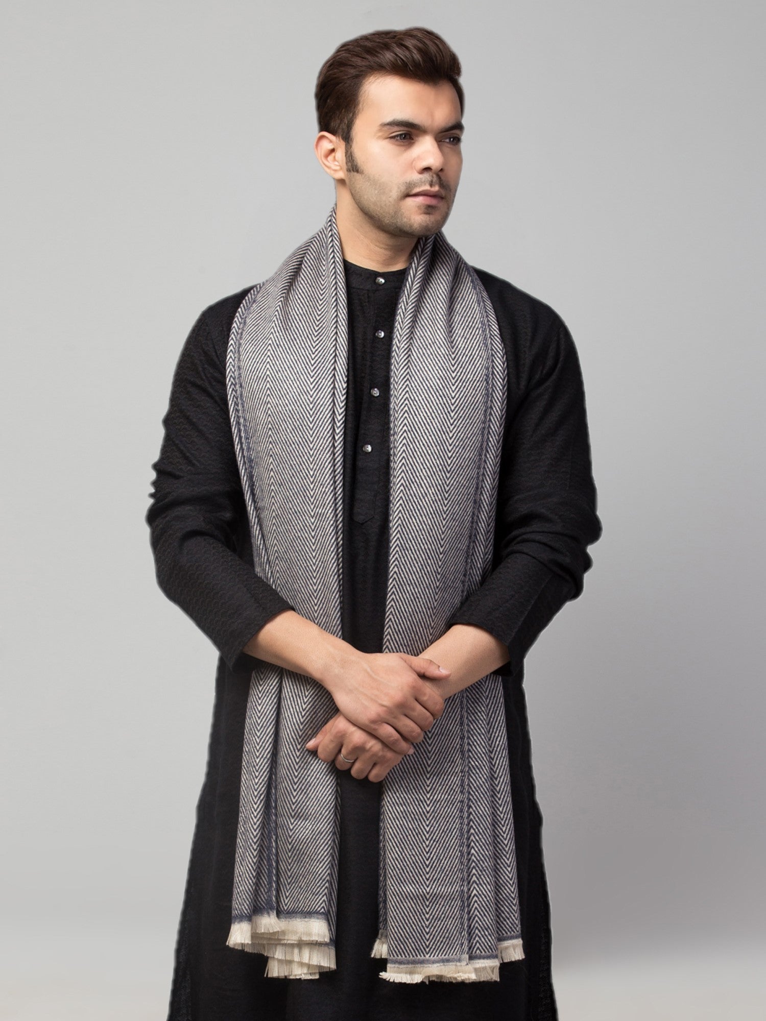 Tweedle Heringbone Design Super Soft Woolen Stole / Scarf for Men - Grey (28 x 80 inches)